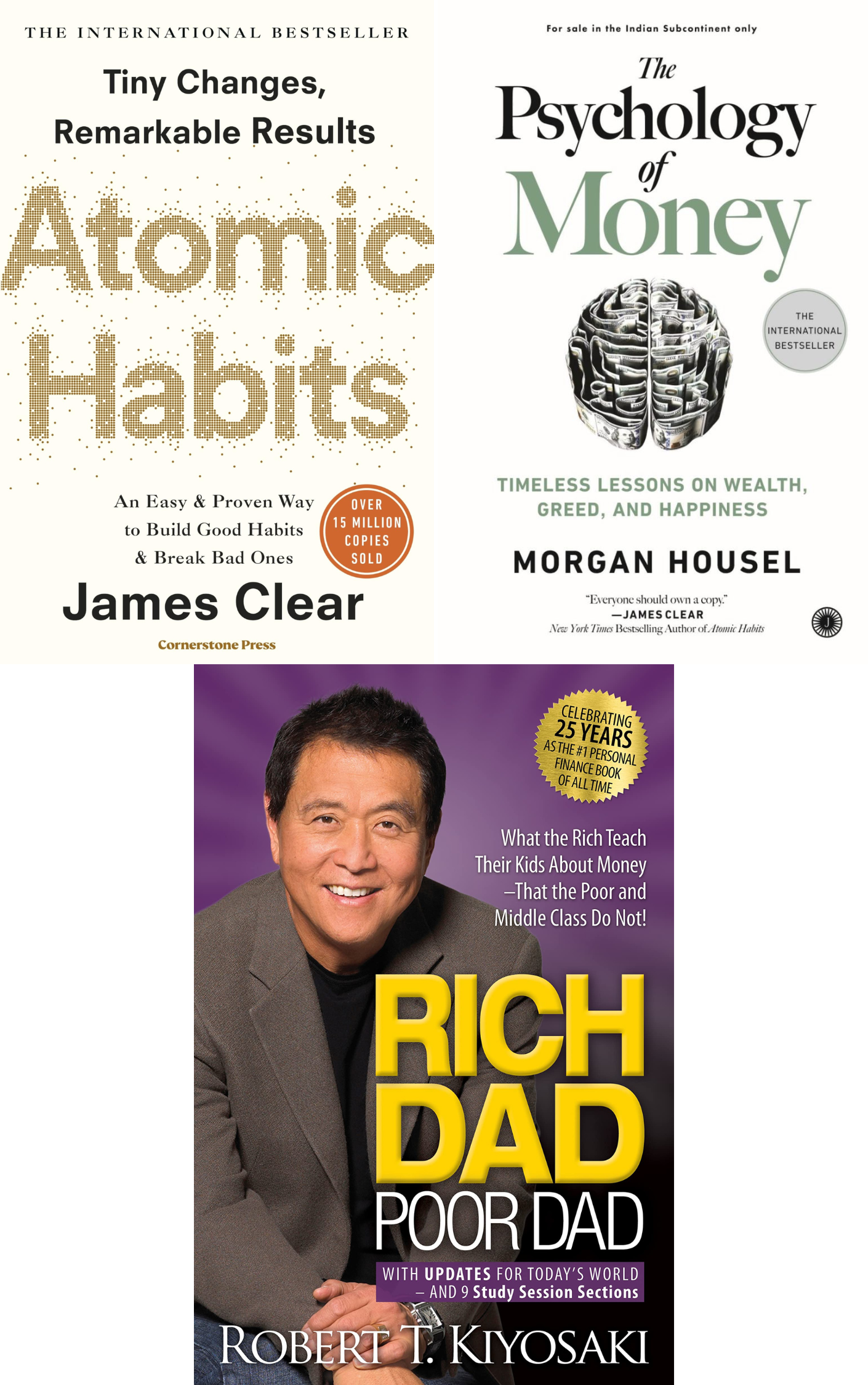 Combo of 3 Bestselling Books: Atomic Habits + The Psychology of Money + Rich Dad Poor Dad